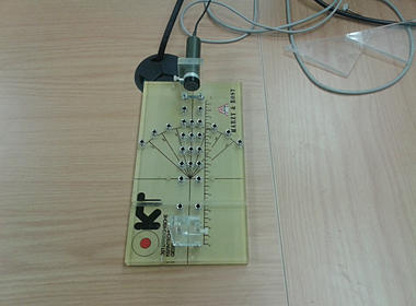 Compteur Geiger-Müller qui permet d'enregistrer les coups de la source et de la placer. Il nous indique aussi la distance entre la source et le compteur.