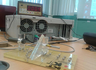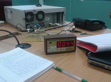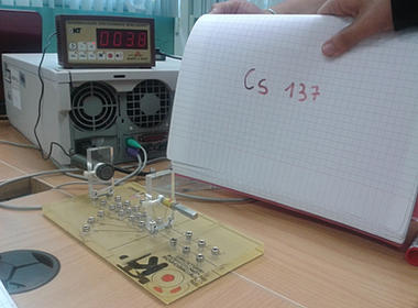 Compteur Geiger-Müller qui permet de régler l'intervalle de temps et qui nous montre les nombres de coups enregistrés.